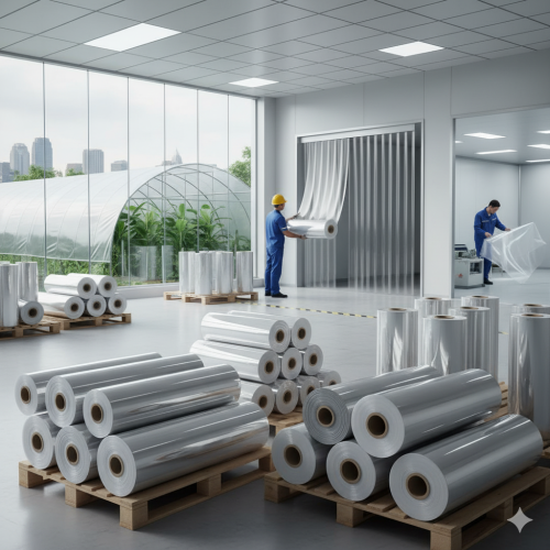 • การควบคุมความชื้นในการเกษตร: พลาสติกม้วนที่มีการเสริมสารป้องกัน UV ถูกนำมาใช้เป็นวัสดุหลักในการสร้างโรงเรือนแบบปิด ช่วยให้เกษตรกรสามารถควบคุมแสงแดด, ความชื้น, และอุณหภูมิได้อย่างแม่นยำ ซึ่งนำไปสู่การเพิ่มผลผลิตและลดความเสี่ยงจากศัตรูพืช